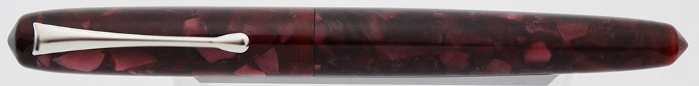 Color Violet Flake is one of the three launch colors when the Pearlette was moved from the Signature to the Production Line. Violet Flake is a red purple cracked ice acrylic. The pen is based off of a cigar shape with convex beveled endings. The clip is silver colored and probably chrome plated. The pen is slightly transparent and light can be seen through the cap lip.