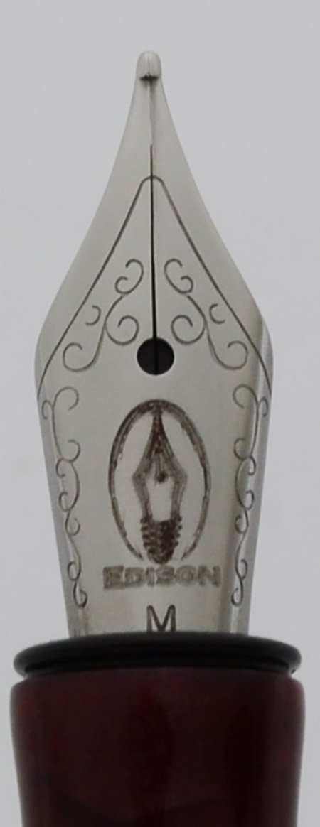 Nib Medium steel nib. This is a JoWo #5 nib with the Edison logo on it. Edison adjusted nibs tend to write on the wetter side. This nib is quite smooth. Other JoWo #5 nib units can be used with this pen by unscrewing the entire nib unit and replacing it with another.