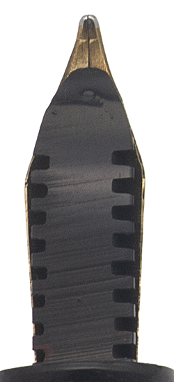 Nib Medium #2 14k nib is somewhat worn, but there is still tipping on each tine. It's soft, but you're not going to get much line variation.