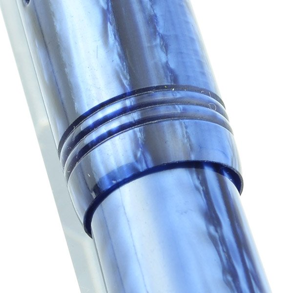 Color Blue with chrome plated trim and three grooves instead of a cap band.