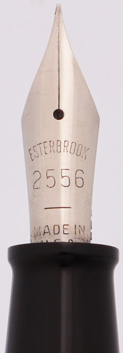 Nib #2556 Firm Fine nib. The Esterbrook 2xxx nibs don't have tipping, the steel end is just rolled over into a ball. It's in great condition and feels very smooth.