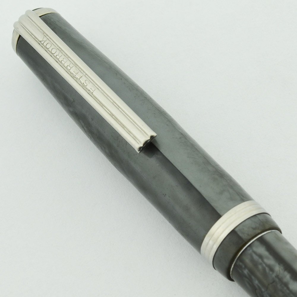 Color Dawn Gray with steel trim and black cap jewel. Dawn Gray is the second gray color as later labeled. Esterbrook called all of their grays, "Gray."