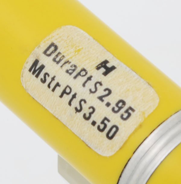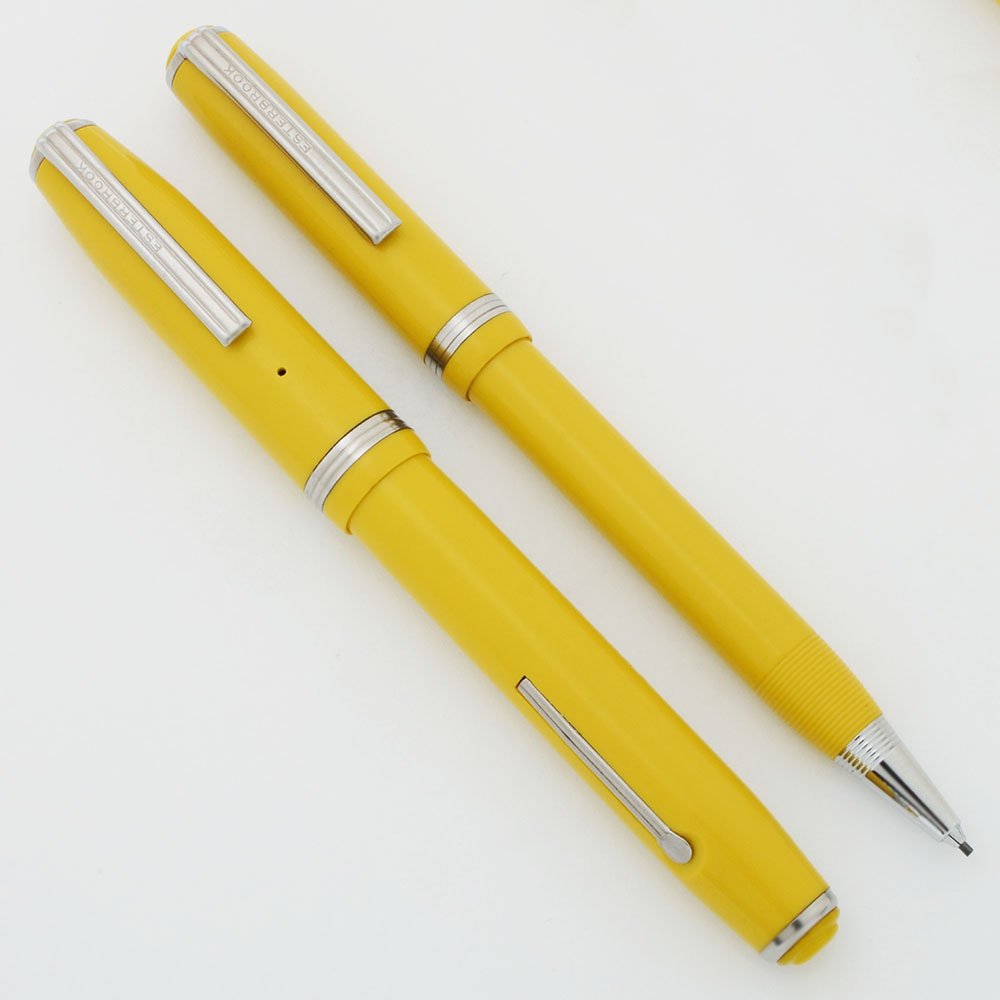 Condition New Old Stock. Fountain pen: The color is a great yellow, very even, no fading. The trim looks really good, no brassing or serious wear. No cracks or chips, dings or dents, or personalization. Original price sticker is still on cap. Fully restored and working well. Pencil: condition is similar to the pen.