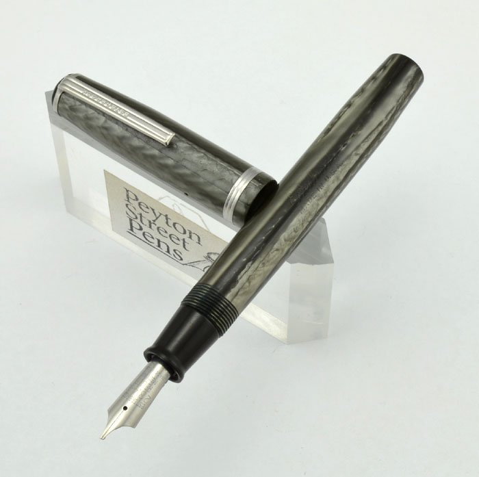 Color | Grey with chrome trim in Esterbrook's interesting ripple wood-like grain pattern. |