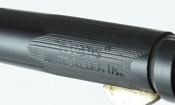 Condition Excellent condition. The color does not appear to have faded over the years and the chasing is quite crisp and unworn. The imprints are deep and mostly clear, though some are a little hard to read. There's hardly a scratch on the pen except for some small marks on the top of the cap which isn't perfectly rounded. Fully restored and working well.