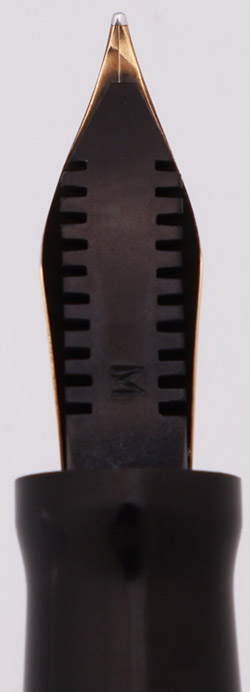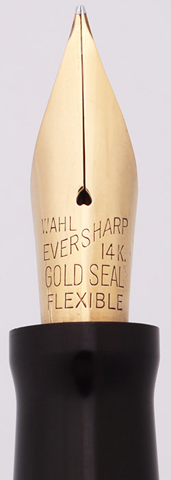 Nib MEDIUM flexible 14k nib labeled "Wahl Eversharp Gold Seal Flexible." Excellent condition, very smooth, with great tipping material. Line variation from fine to broad. Please refer to our writing sample below for a demonstration of this nib's performance.
