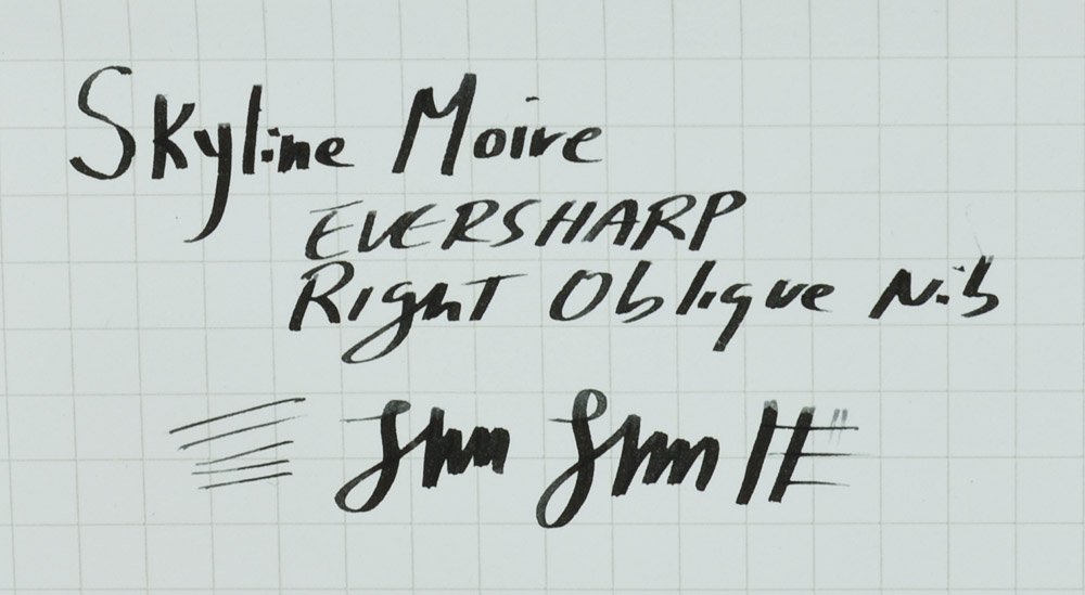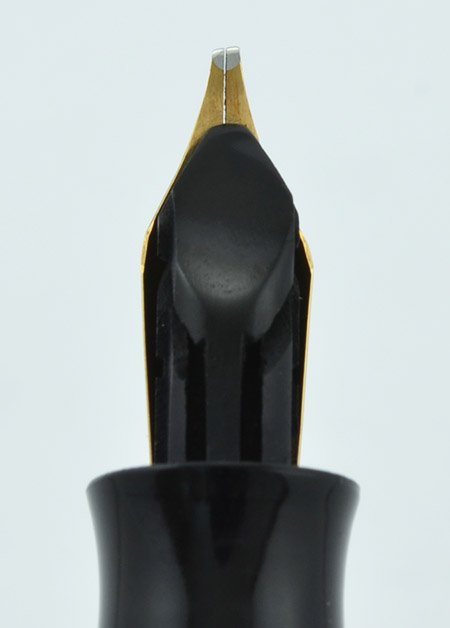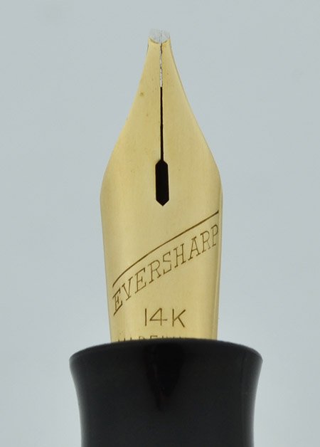 Nib FLEXIBLE BROAD RIGHT OBLIQUE Eversharp 14k gold nib. It's smooth, with lovely tipping and beautiful hairlines in the sideways strokes, and a nice wide downstroke on top of its flexibility. See our writing sample in the photos below. Really a special nib! Right obliques are said to be suited to left handed writers, but with the proper orientation it writes well for us right-handed folks too.