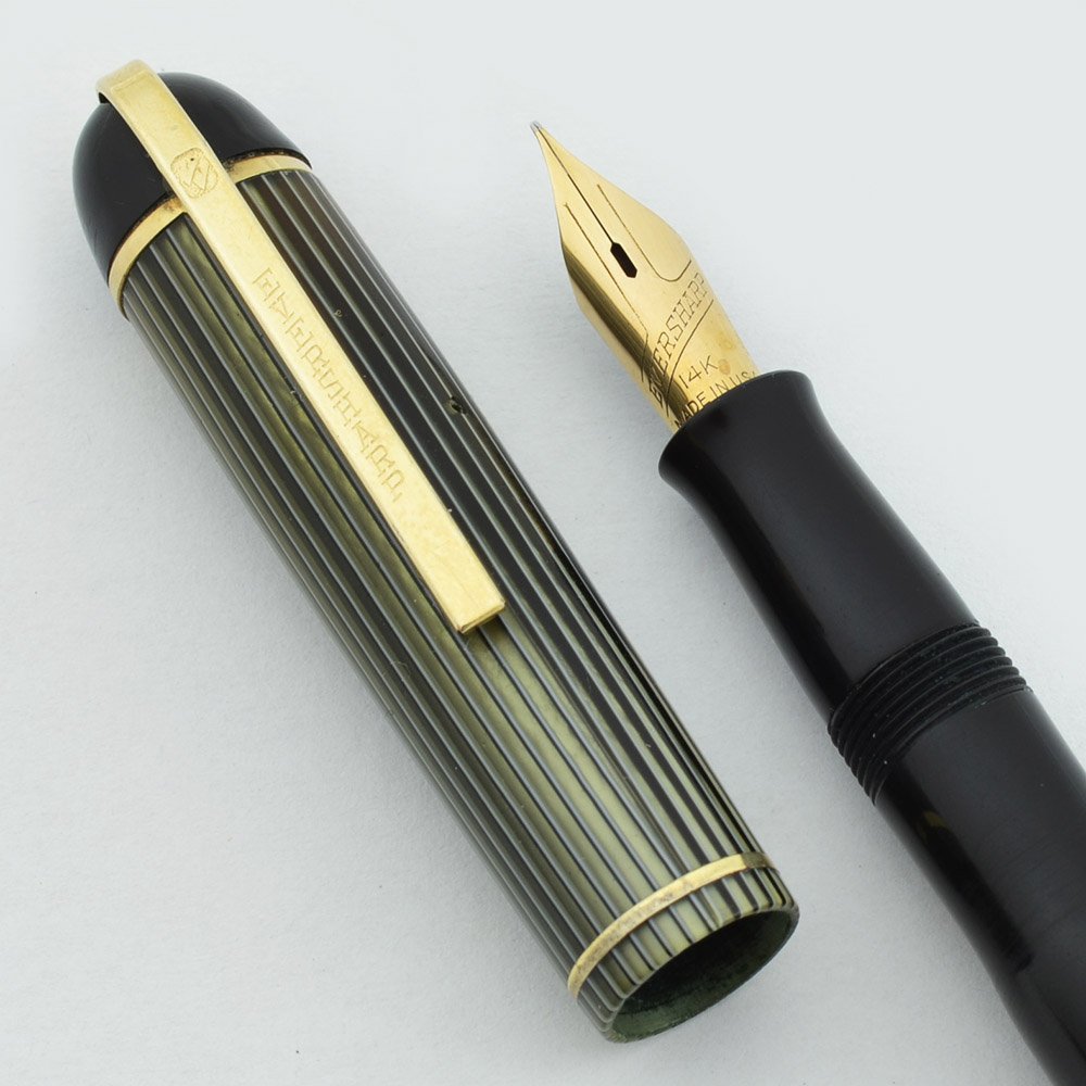 Condition Very nice condition. No cracks or chips, dings or dents, or personalization. It's fully restored and working well. There are some small scratches and marks on the cap and barrel, as well as some very minor bulging around the barrel where the lever ring is. There are spots of plating wear on the thin cap band, the band where the cap and derby meet, and the lever, though the clip shows no wear.