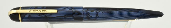 Color Stripey-marbled "moire" pattern in blue, black derby and section, gold plated trim.