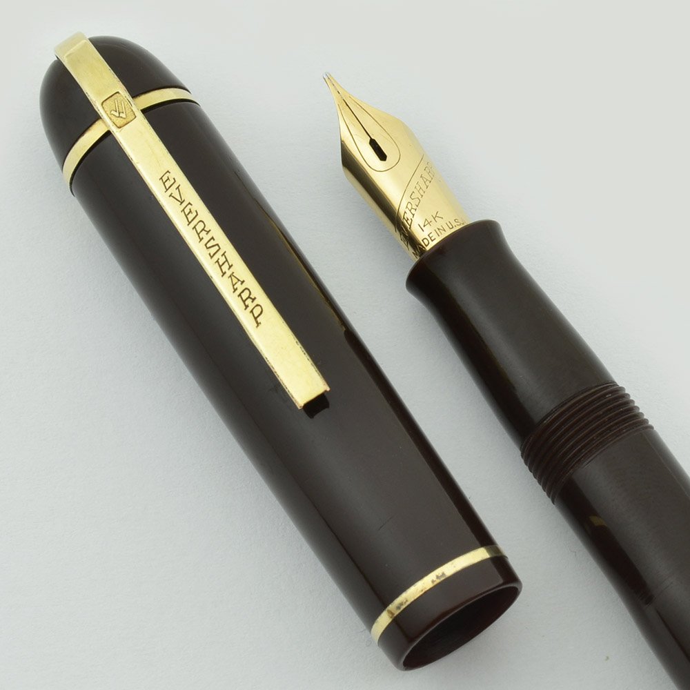 Condition Excellent, lightly used condition. No scratches or bite marks. Super shiny and free of scratches except for a few small scratches on the top derby. There is an indentation in the band that loops over the top of the cap. Very light wear/brassing to the sides of the clip. Some brassing on the thin cap band. Functions as it should, fully guaranteed. No engraving.