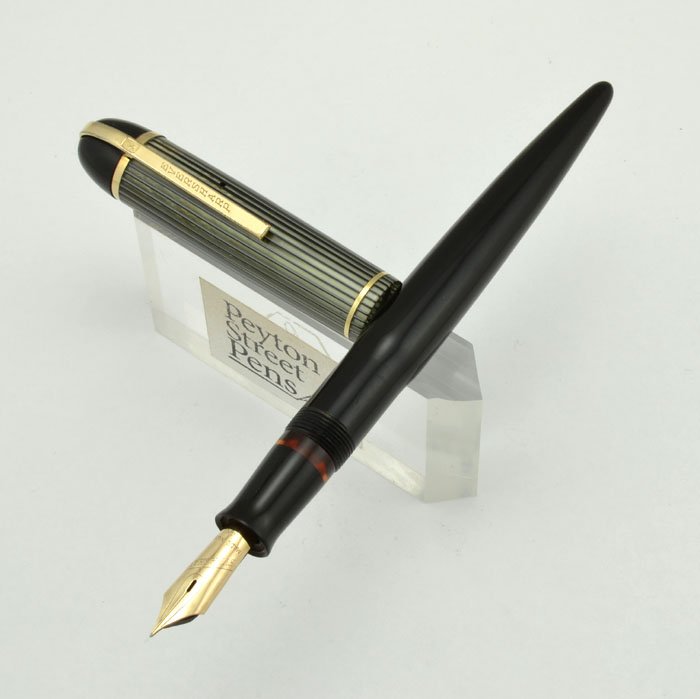 | Color | Black barrel with striped cap, black derby, gold filled trim. |