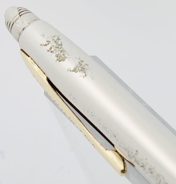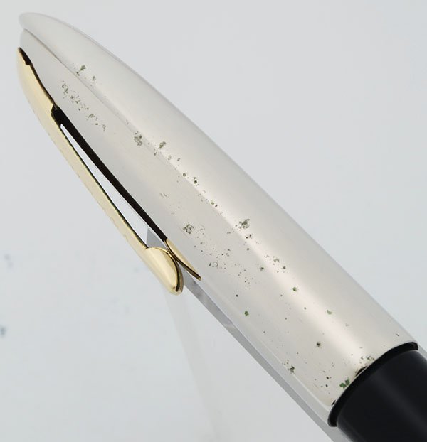 Condition New old stock, but there is quite a lot of pitting on the caps and the lever of the fountain pen (see photos below). No dents or major scratches. We've fully restored the pen and it is working well.