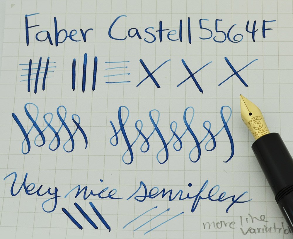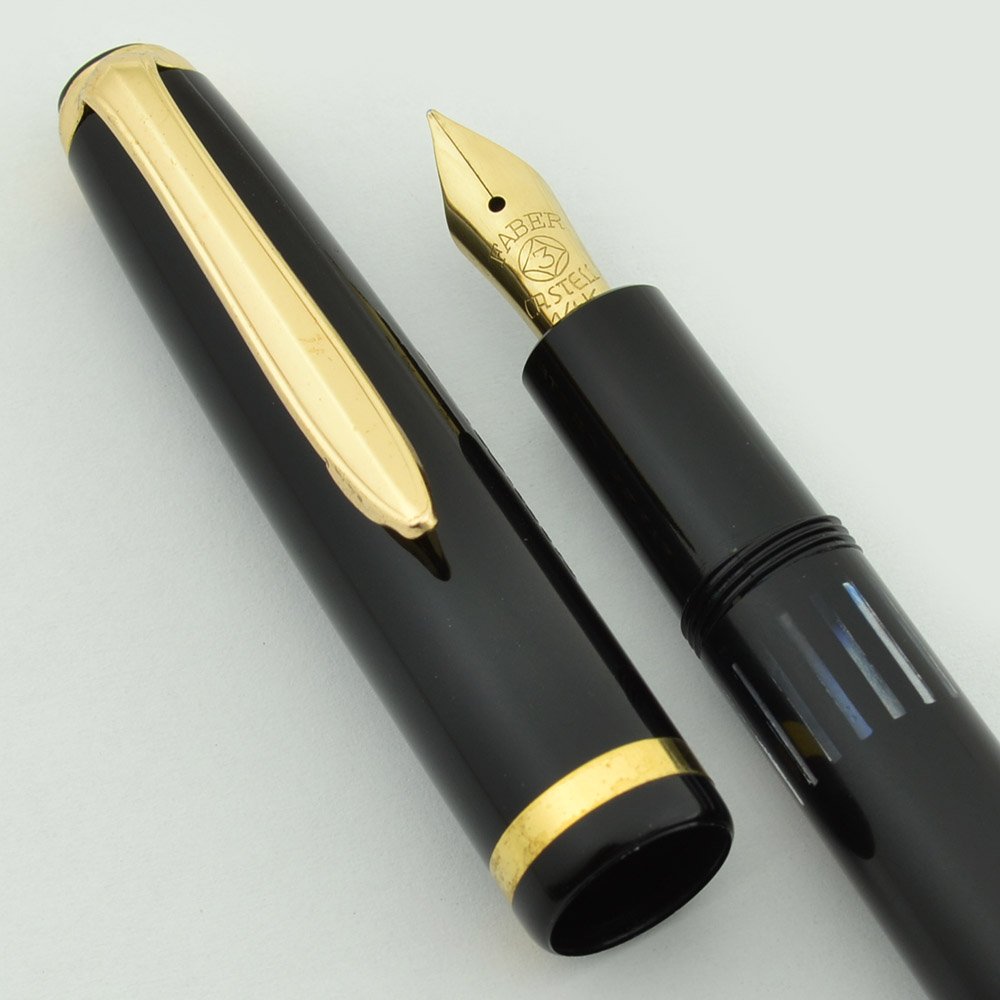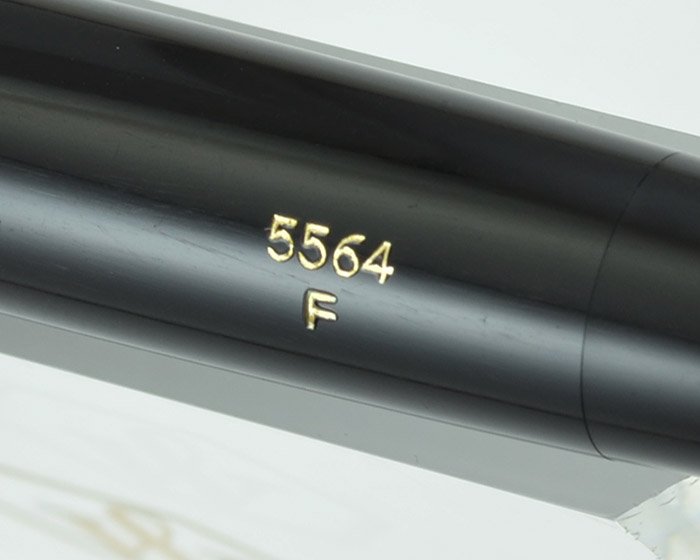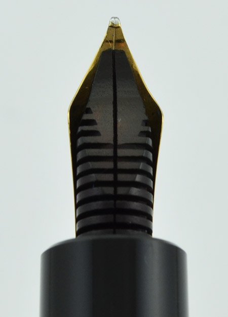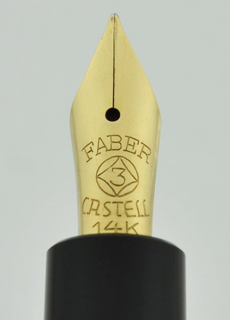 Nib 14k Fine nib. It has great tipping and writes smoothly with very nice semi-flex. It is labeled F near the piston knob. Please see the writing sample below. The nib is labeled #3.