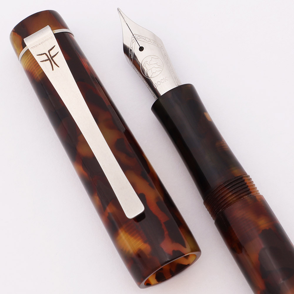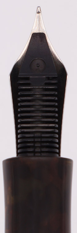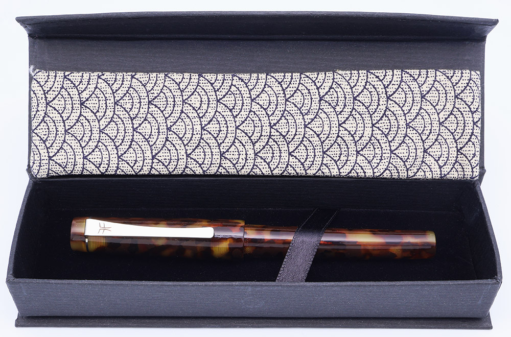 Condition Excellent + condition. Light scratching on the cap and barrel. The surface isn't completely even, but it seems more like a design choice to give it more of an "organic" feel. There are some small scratches on the section. No damage or cracks, just signs of light usage. The clip has light scratching on the face. Ships in box with a fabric sleeve inside to protect the pen.