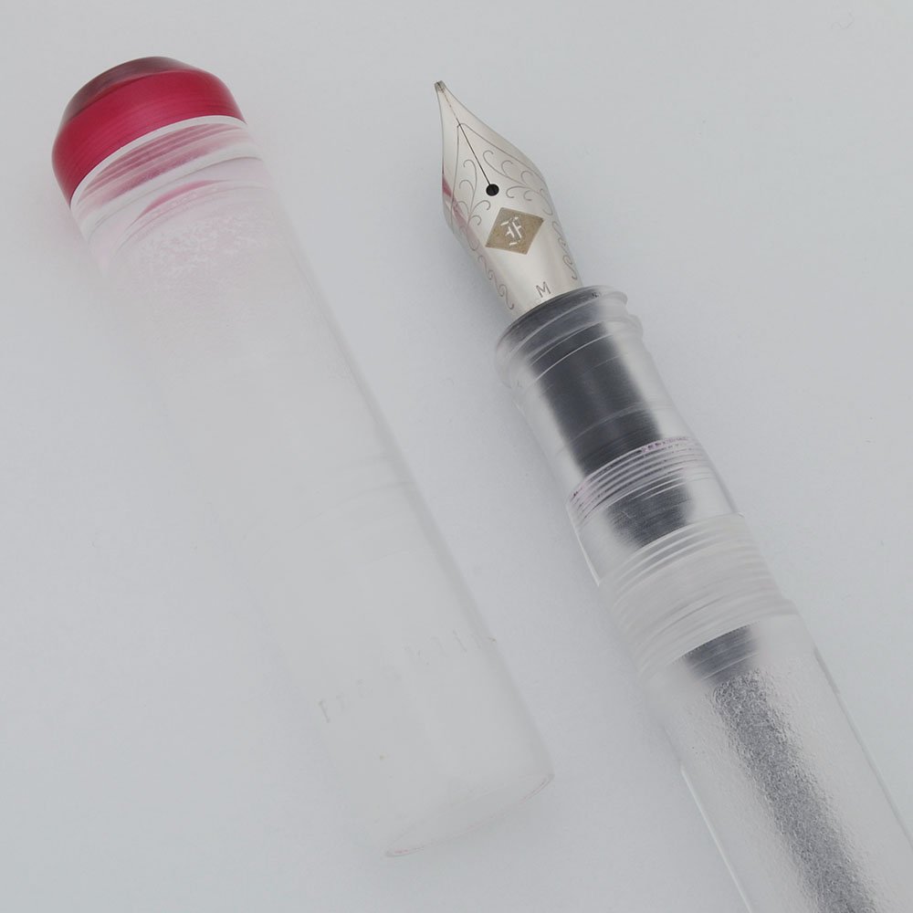 Color A mixture of frosted and clear (at end of barrel and below red cap piece) acrylic, with red top piece. .