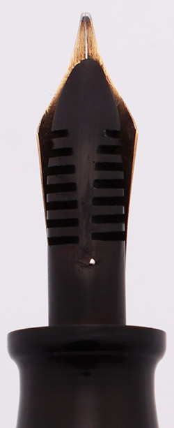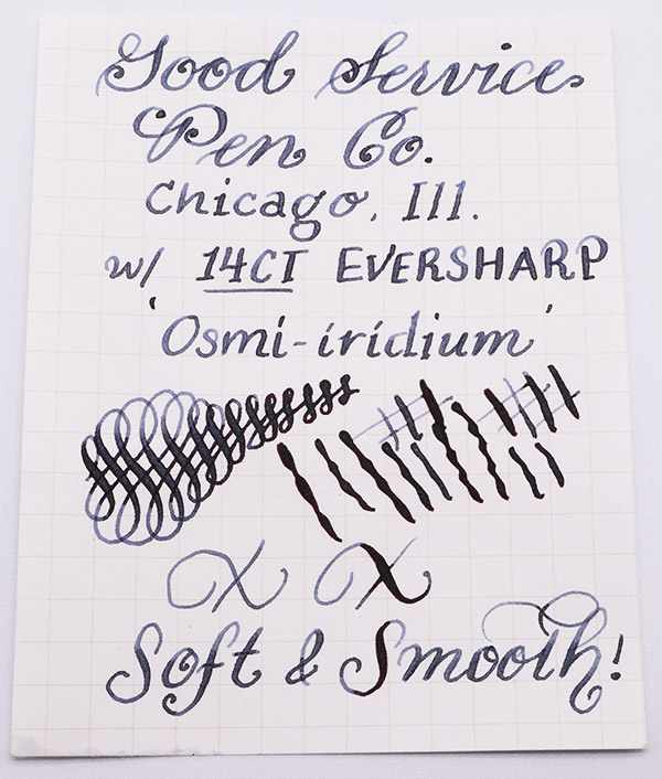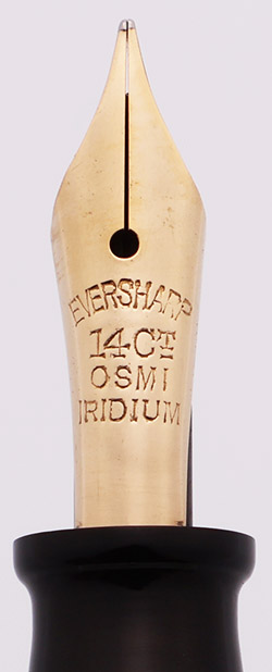 Nib FINE FLEXIBLE 14k Eversharp Osmi-Iridium nib. Soft and smooth. The nib imprint suggests this was a nib made in the UK, so it is no doubt a replacement. See the writing sample below
