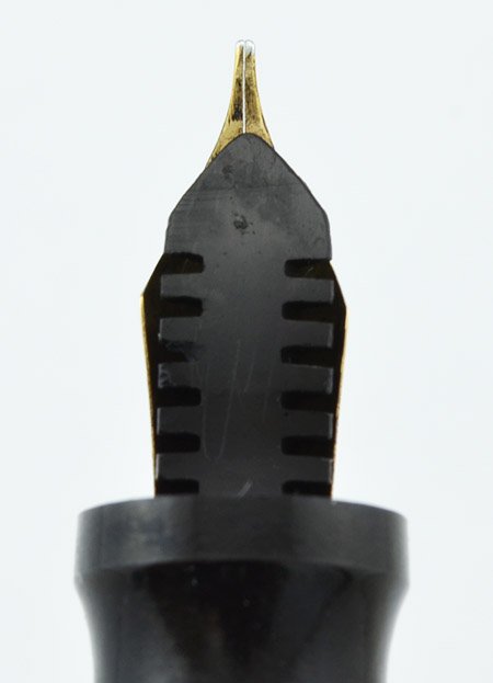 Nib FLEXIBLE FINE Ingersoll 14k nib is smooth with lovely tipping material. It's what we would call fully flexible, with easy flex from fine to a nice double broad under hardly any pressure.
