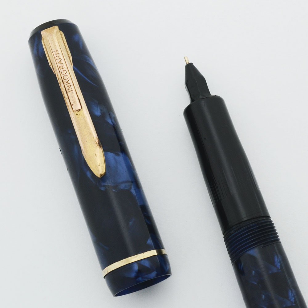 Condition Excellent condition. The coloring is even and looks great. The cap band is a little loose. It moves at one point and has scratches from the movement. The clip is partially brassed. The barrel imprint is very clear. The imprint is very clear. No major scratches and no cracks, chips, or dents. It looks like the area around the tip has been chewed on. It's restored and working well.
