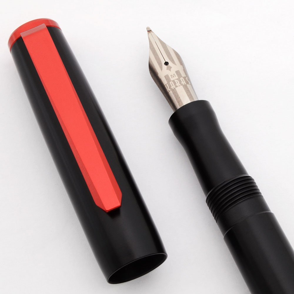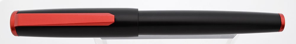 Color Black anodized aluminum barrel, cap, and section, with red clip and trim.