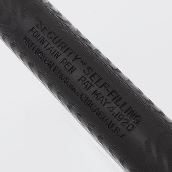 Product Name We think this is model 600. It's got a #6 nib and a 6 on the end of the barrel. Please see this great reference page on the Richard Binder web site. The Securograph Pen Company (owned by John and George Kritikson) was located in Mount Carmel, Illinois and later moved to Oakland City, Indiana where the name was changed the name to The Security Pen Company.