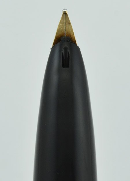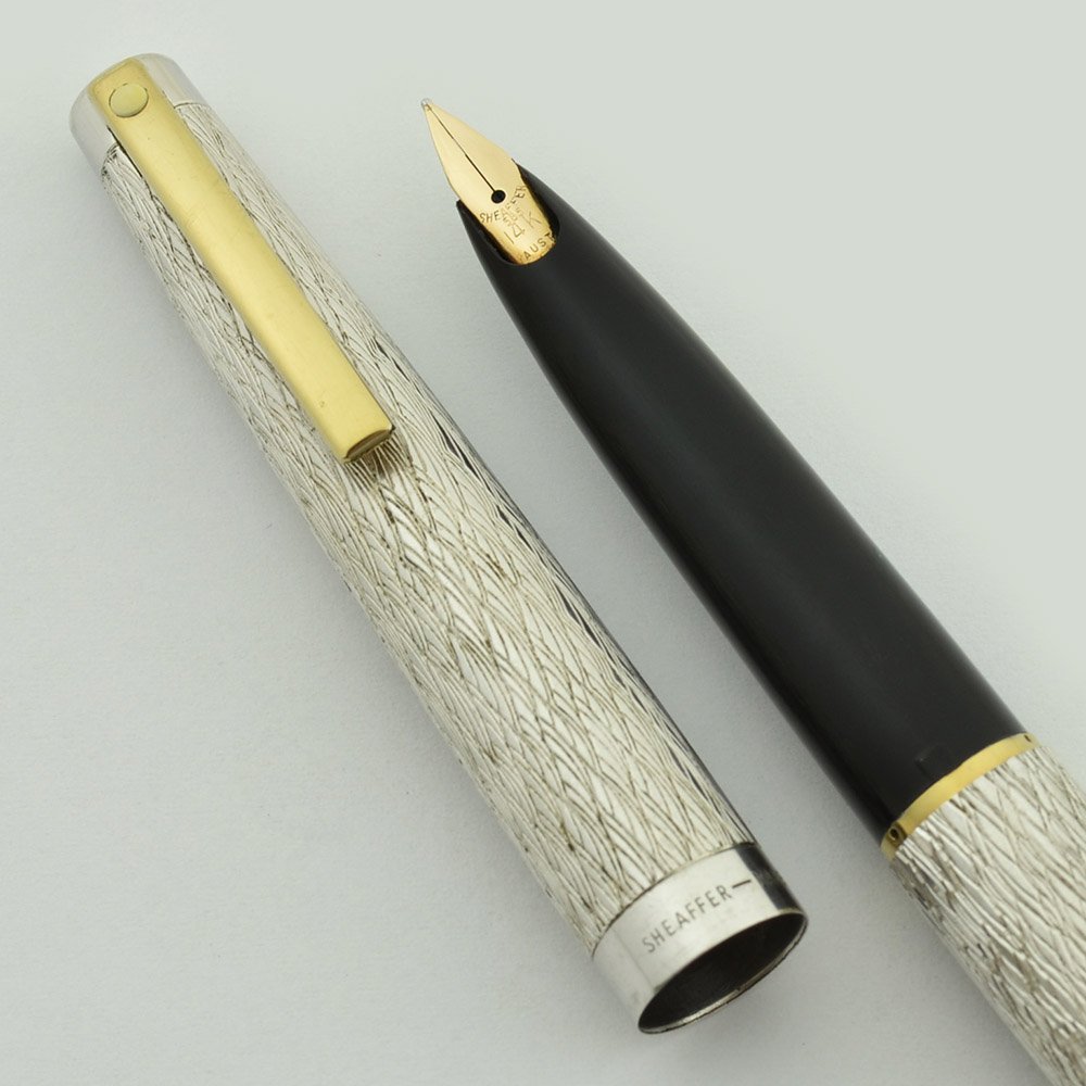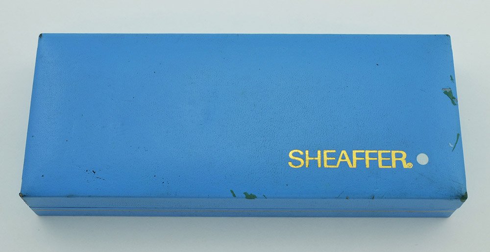 Nib FINE Sheaffer 14k gold "Stylpoint" recessed nib is smooth with lovely tipping material. It has some softness and give to it, but no real line variation due to its upturned shape. It is labeled that it was made in Australia and the section has an F on it. The nib imprint is a bit faded. (Please note that the Lambrou books shows this pen with a conical Triumph nib. According to our research, when these pens first came out in 1971 they were fitted with a short version of the Triumph nib; this was changed in 1973 to the type of "Stylpoint" nib which is on this pen.)