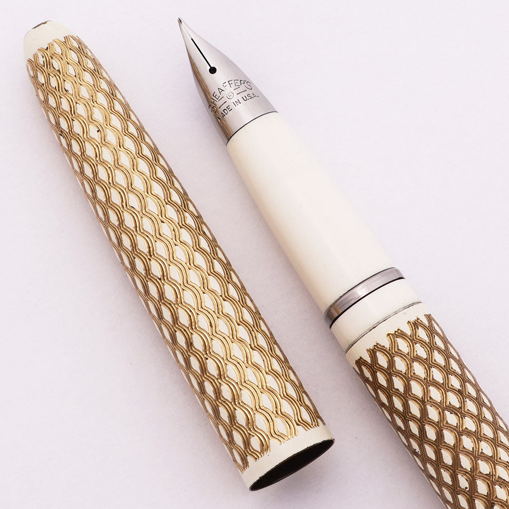 Color The body is white enamel with detailing in gold. These fish-scale patterns are called Paisley by Sheaffer.