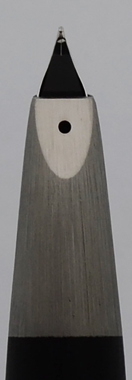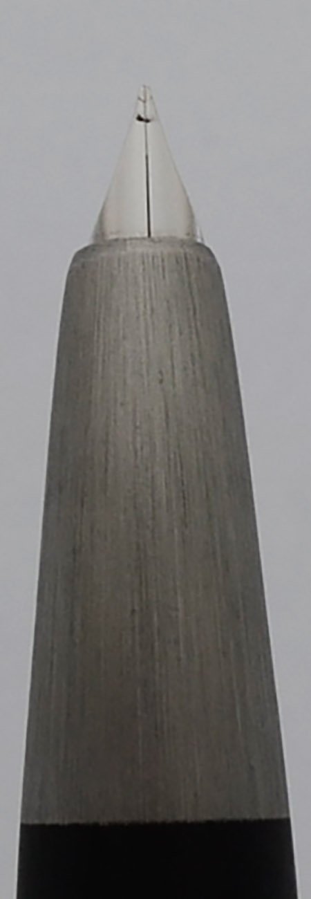 Nib FINE 14k gold which has been plated with platinum. The section is not engraved but we know this is the original box and the box labels it a fine. It's very smooth, with excellent tipping.