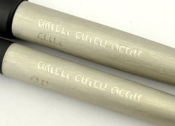 Both writing instruments are personalized with writing in Hebrew. We think it's some sort of school or graduation inscription.