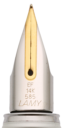Nib EXTRA-FINE 14k nib. This pen has a Z-55 nib, which is interchangeable with nearly all other Lamy fountain pen nibs (NOT the 2000 model).