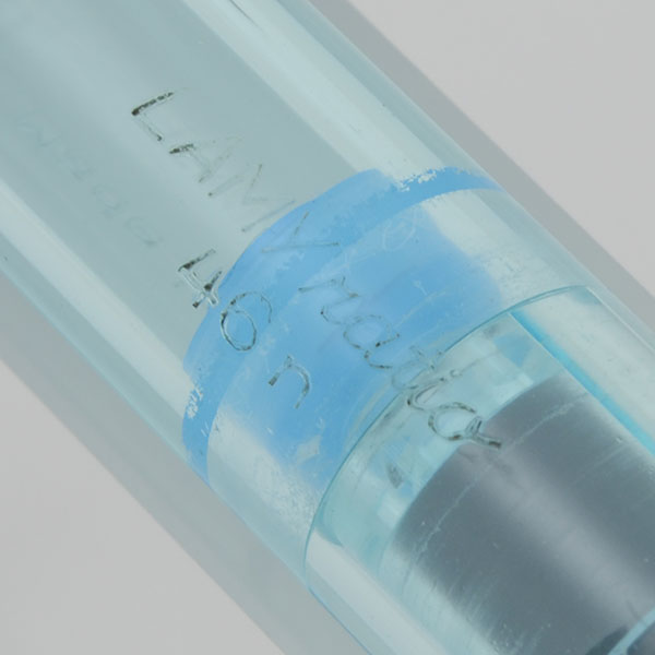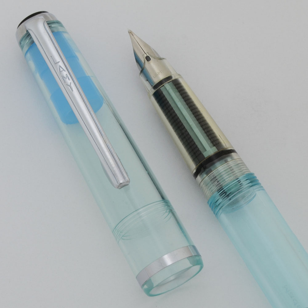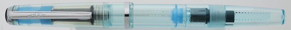 Color Clear body and section with silver colored hardware. The material has a slight blue tint to it, and the cap liner is a pale translucent blue.