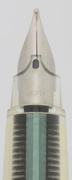 Nib Extra-Fine semi-hooded steel nib. The nib itself is unmarked, but it looks comparable to an EF on a Safari that we had handy.