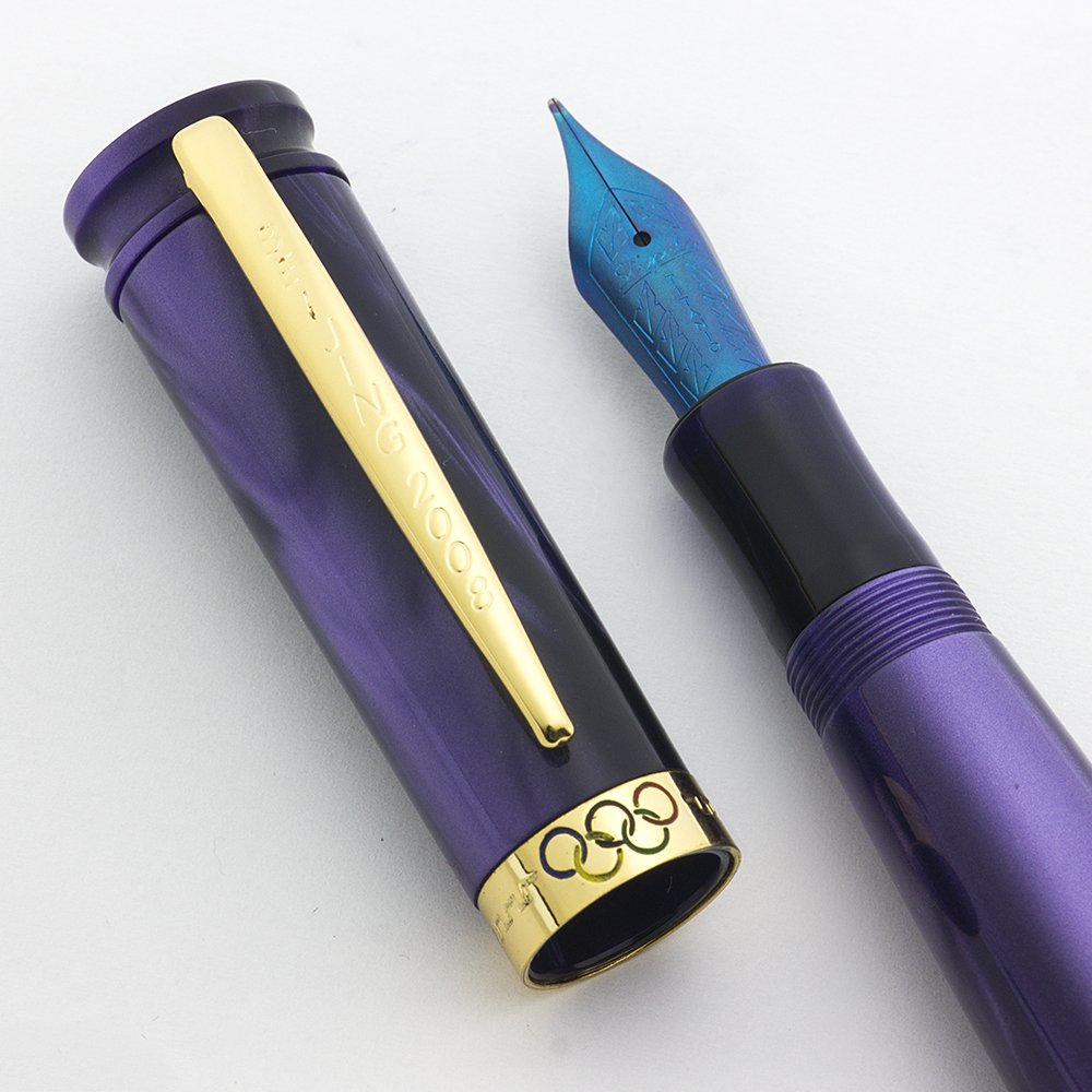 Product Name Mini Olympics, one of 338 fountain pens made, modeled off of the Mini Qian Long. The barrel is marked, "007/038".