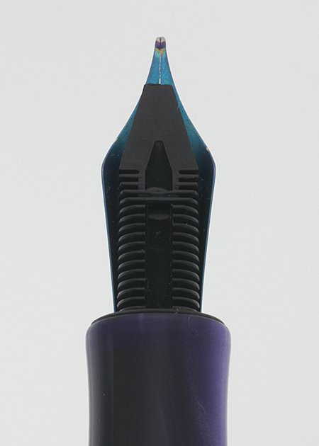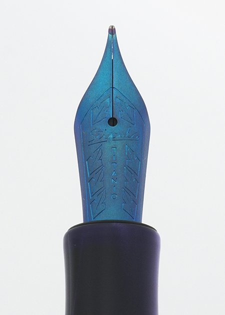 Nib Replacement nib. Medium Stipula Titanio nib. This is a blue colored titanium nib that offers some semi-flexible writing. This is not the original nib for this pen but it is a high quality, smooth nib and doesn't look out of place.