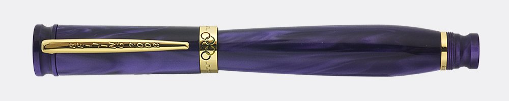 Color Pearlescent purple resin with gold plated trim. The cap band has the five rings of the Olympics on it.