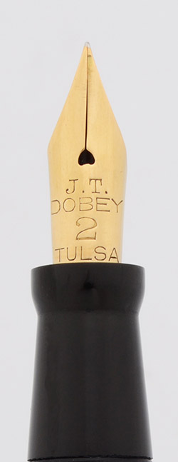 Nib FINE flexible nib marked "J. T. Dobey #2 14k Tulsa". It puts down a fine line, and has really nice flex from extra fine to broad. Please see the writing sample below.