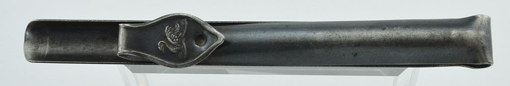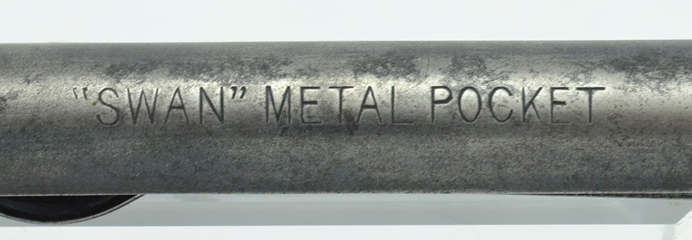 Color A metal pen sleeve with a clip on it. The clip is imprinted with a swan. It can hold a narrower pen like an Esterbrook but not a larger modern pen. It was intended for clip-less pens. We're not sure about the metal which may be nickel, but it's not sterling or sterling plated.