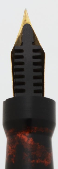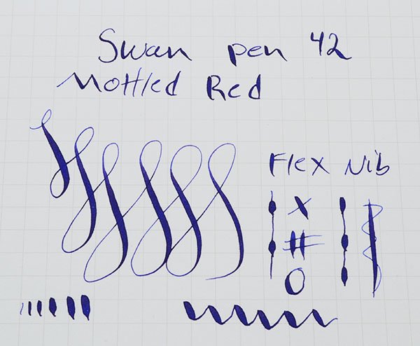 Nib 14k nib with overfeed. We consider it full flex because it flexes without effort, extra fine to broad. See writing sample in photos.