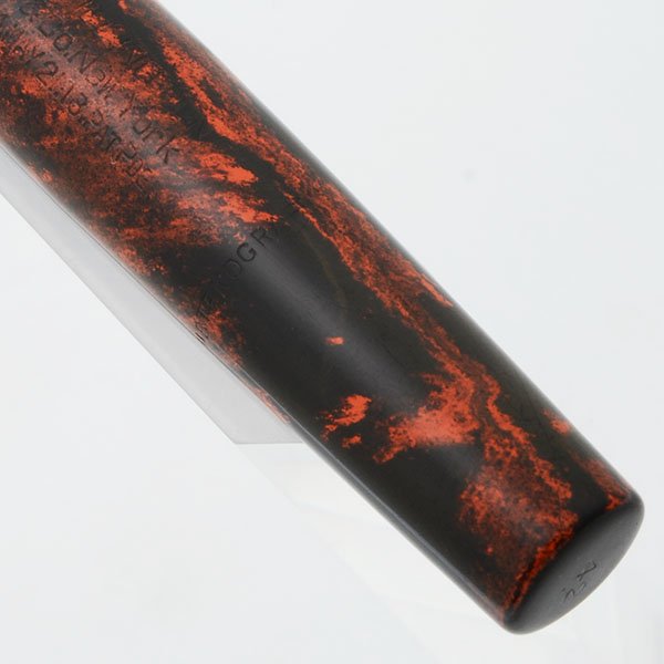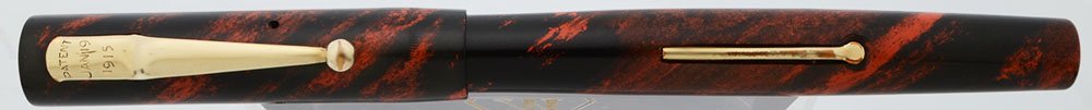 Condition Superior condition with no cracks, chips, dents, or dings. This is a beautifully colored pen with a sleek appearance. The cap and barrel have light scratching. The barrel has marks caused by the cap lip. The lever has brassing and plating wear. The clip has brassing and plating wear on the ball but otherwise it is excellent. The top of the cap is a bit faded. The imprints are clear.