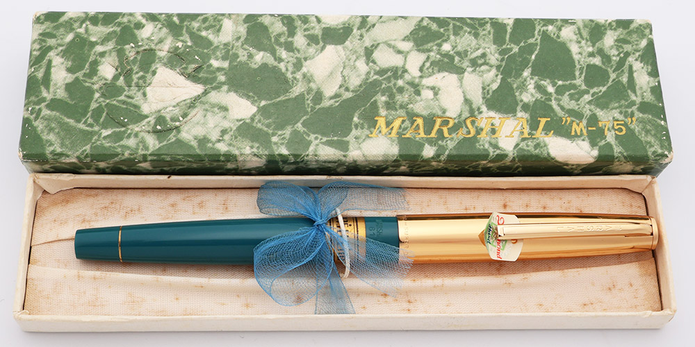 Condition Near mint in box. We've searched extensively, but have been unable to find any information on this brand. "Diamond Hard" hangtag under the clip refers to the nib, which is definitely firm. All of the imprints are clear. There's a sticker affixed to the barrel of the pen, which says "EX FINE" and also has some characters that we are also unable to decipher. The box has some wear to it, but as far as we can tell is in good shape.