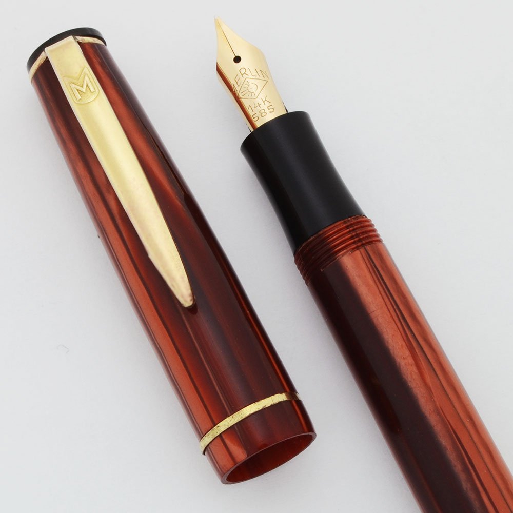 Condition New old stock and in unused condition for this pretty little pen. The color is bright and consistent and the pen has a nice sheen. Barrel and cap have light scratching, but no deep scratches. The clip and trim were very thinly plated to begin with, and none of the plating survived polishing and little remains though these pens have never been used. No cracks or chips. The imprints are clear.