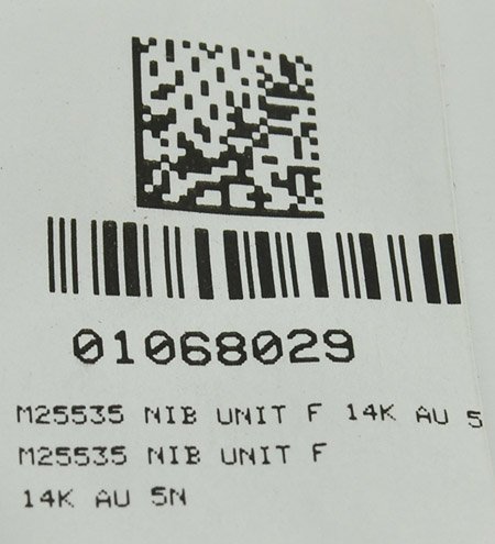 Product Name Montblanc 144 nib unit ... part number 01068029 according to the sticker on one of the nib units, though we think the last digit is specific to an individual nib size. The Montblanc 144 is a cartridge/converter filled model, and the nib units are configured for this method and not a piston filled pen.