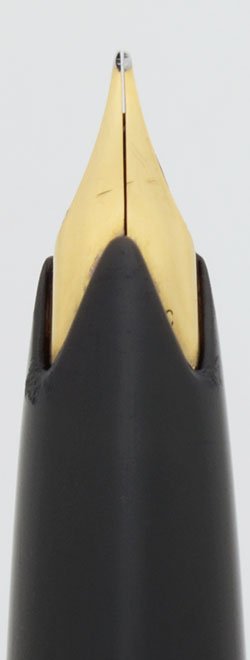 Nib FINE. 14K nib. You will see there is a slight gap between the tines, but please be assured that we tested it with ink and we are able to confirm that the ink flow is fine.
