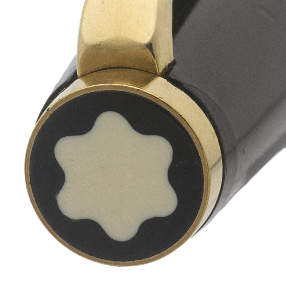 Color Black with gold trim. There's a white Montblanc icon on the top of the cap and the end of the barrel.