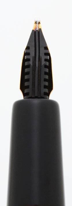 Condition Excellent + condition with no cracks, chips, dents or dings. This is a small classic pen in black with gold trim. The cap and barrel have light scratching. The cap band and clip look great. The emblem at the top of the cap is in lovely condition. The imprints are clear.