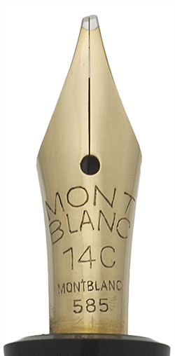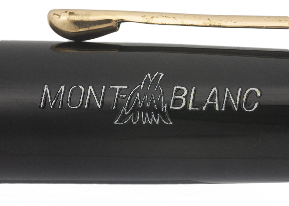 Condition Excellent condition with no cracks, chips, dents, or dings. This is a short, velvety black, shiny pen that has a vintage appearance. The cap and barrel have light scratching. The blue viewing window is clear and vivid. The cap band has brassing, plating wear, and light microscratching. The clip has a number of teeny scratches and a bit of plating wear along the lower edge. The clip ring has microscratching, a bit of plating wear and one small pit. The white outlining on Montblanc logo on top of the cap has largely rubbed off. The imprints are clear.