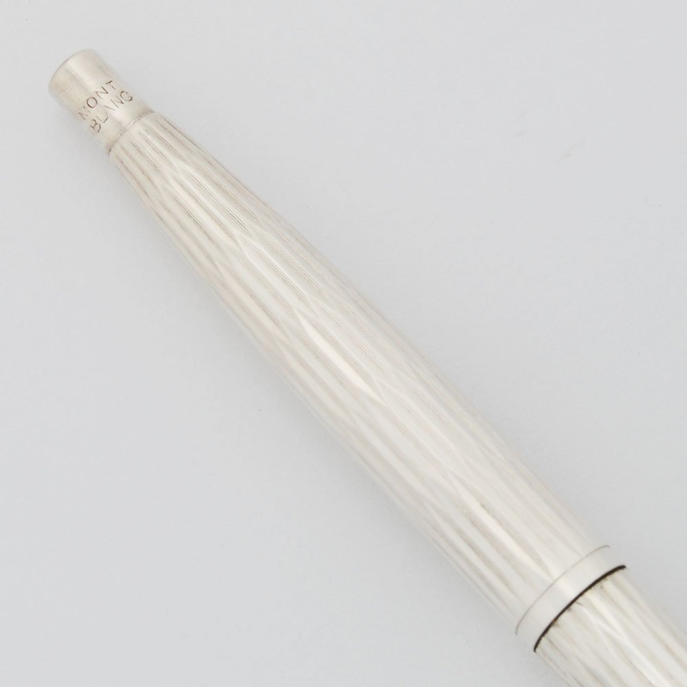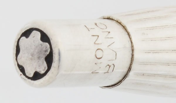 Color Silver plated with a chased diamond finish. The diamonds are long and narrow. The Montblanc emblem is in the top of the cap.