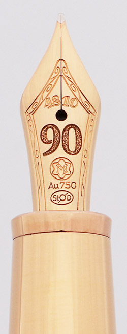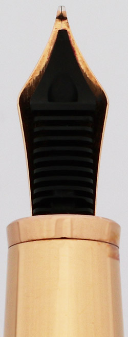 Nib Fine or Medium Montblanc 18k rose-colored nib marked 4810. (The nib isn't marked and we don't have any documentation with this pen, but it's very close to or maybe a teeny bit wider than another MB fine that we have)