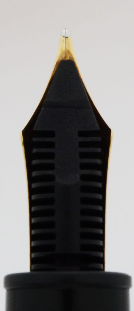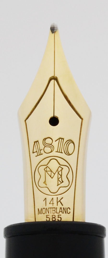 Nib MEDIUM. The nib is a spring-y 14k Montblanc 4810 nib. It is an unlabeled nib and produces a wide medium line. The single tone nib is in excellent condition. It has the split ebonite feed.