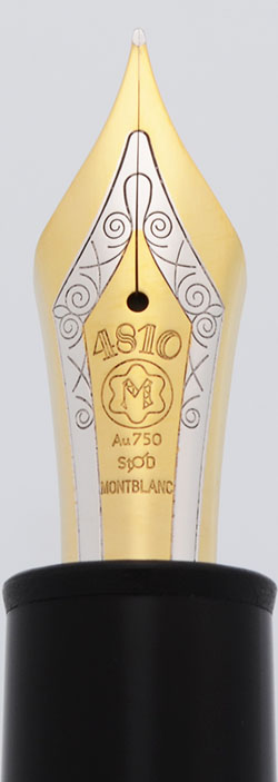 Nib FINE 18k nib. The nib is a two-tone 18K Montblanc 4810 nib. The pen has a late plastic feed.