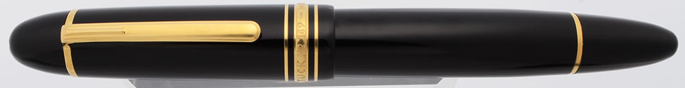 Color Black barrel with gold plated trim. White Montblanc emblem on top of cap.